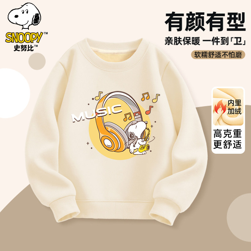 史努比童装秋冬新款加绒圆领卫衣儿童长袖加绒多色套头衫加厚上衣