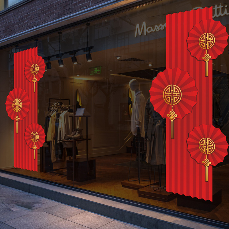 2026年新年春节装饰贴纸酒店商场黄金珠宝店玻璃门橱窗静电超大