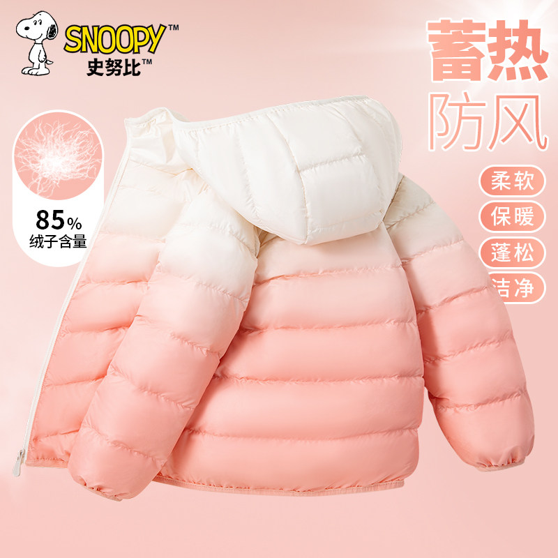 史努比儿童羽绒服女童秋冬款6-12岁潮流保暖外套2025新款轻薄冬装