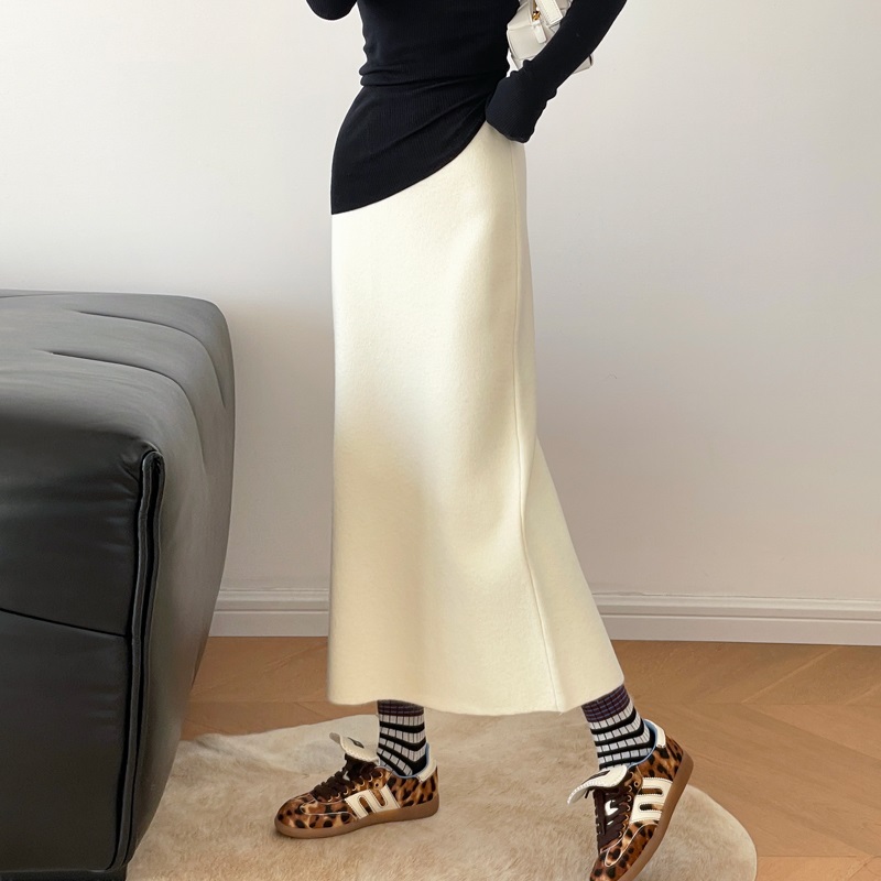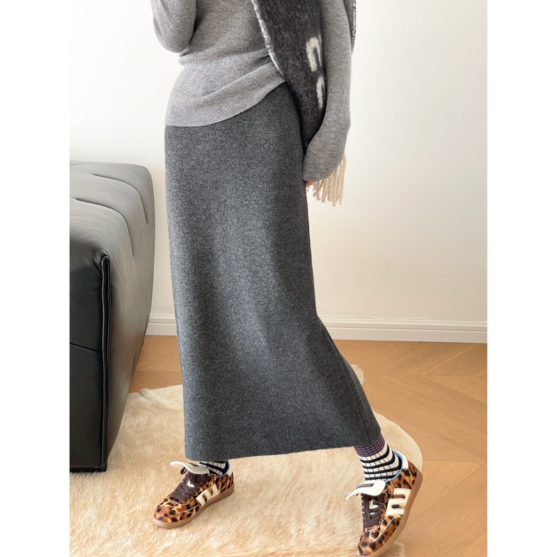针织半身裙女秋冬高腰垂感显瘦中长款毛线a字裙加厚直筒包臀裙
