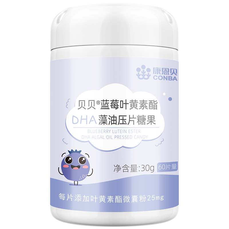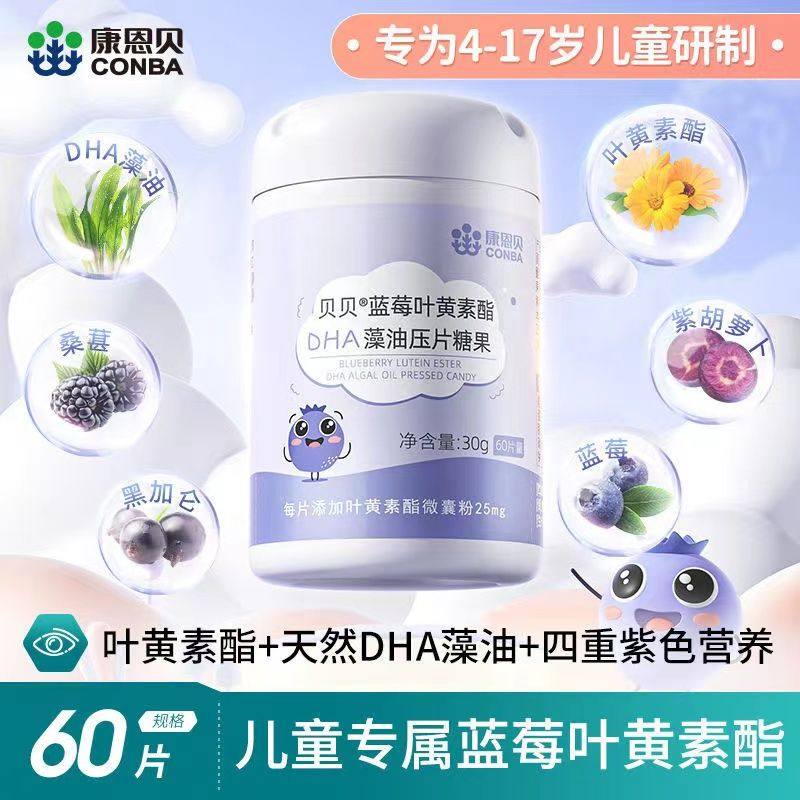 康恩贝蓝莓叶黄素儿童软糖官方正品旗舰店非护眼专利DHA压片糖果