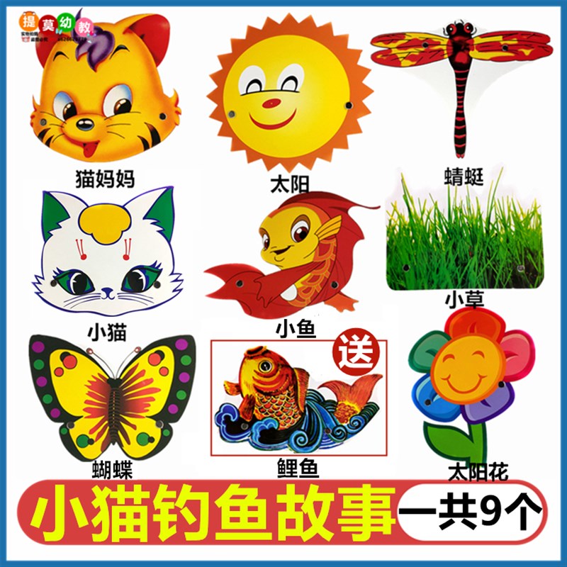 速发小猫钓鱼故事表演头饰幼儿园儿童舞台剧演出小猫咪小动物面具