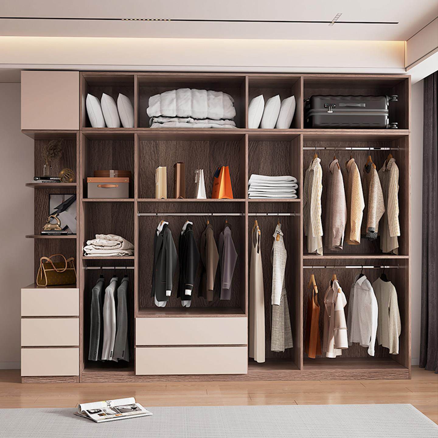 全实木衣柜家用卧室现代简约免把手平开门柜子定制大容量整体衣橱