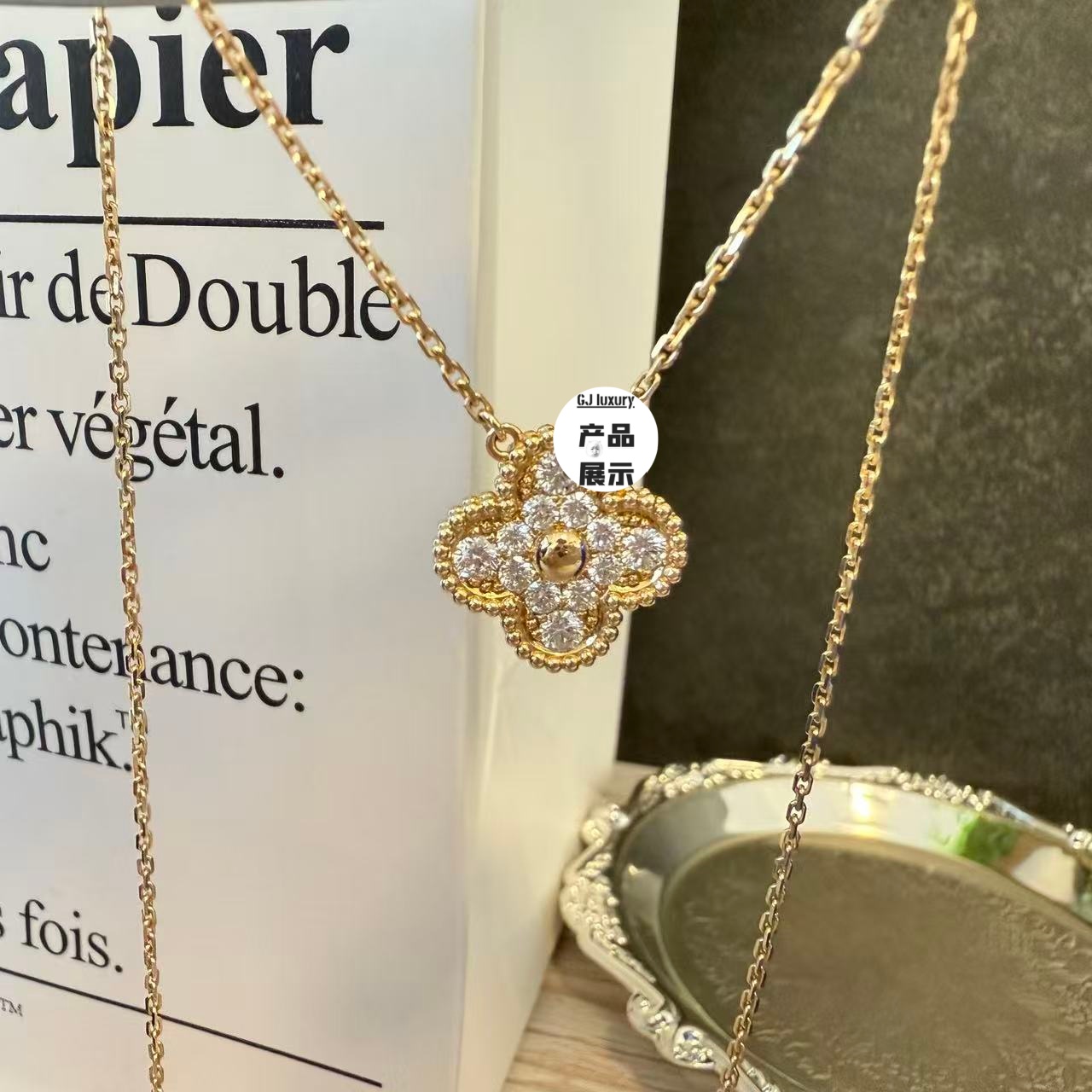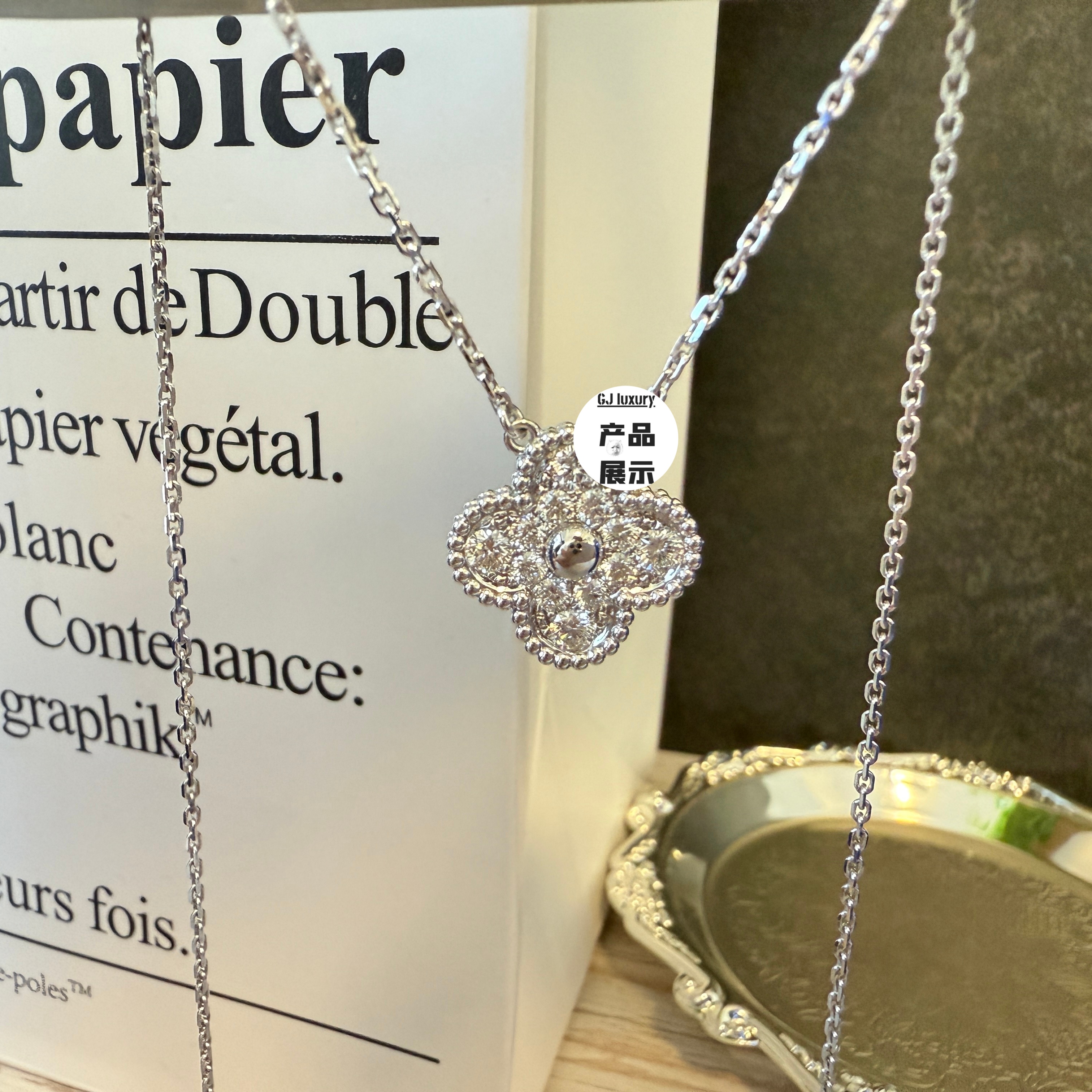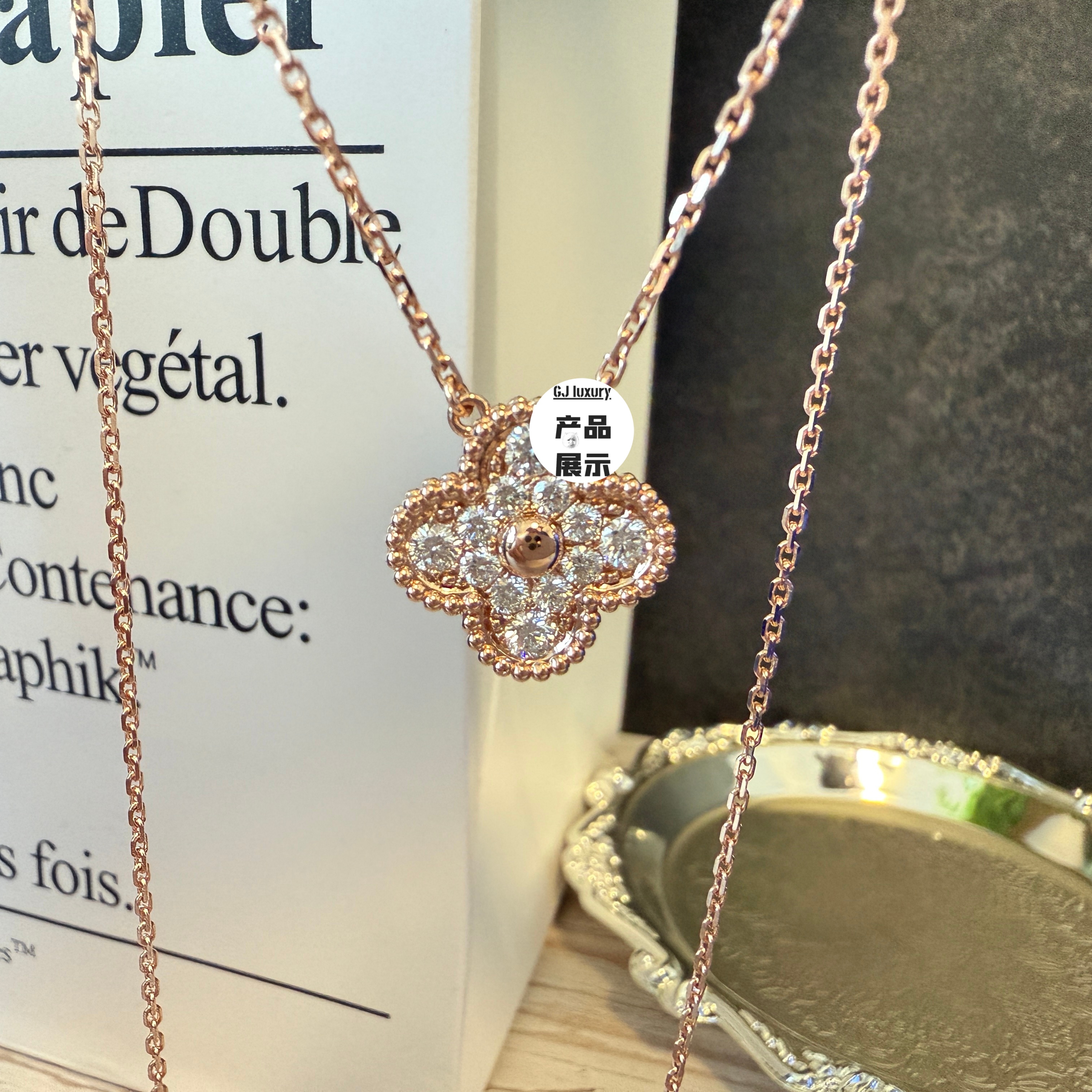 18K金四叶草项链女Au750玫瑰金白金黄金镶嵌天然钻石玉髓玛瑙镭射