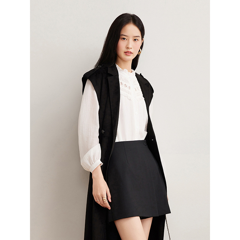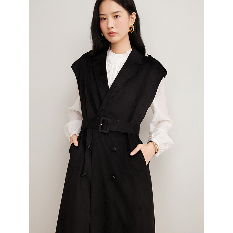 Goodland美地女装2025年春新款环保麂皮绒面风衣马甲外套长款