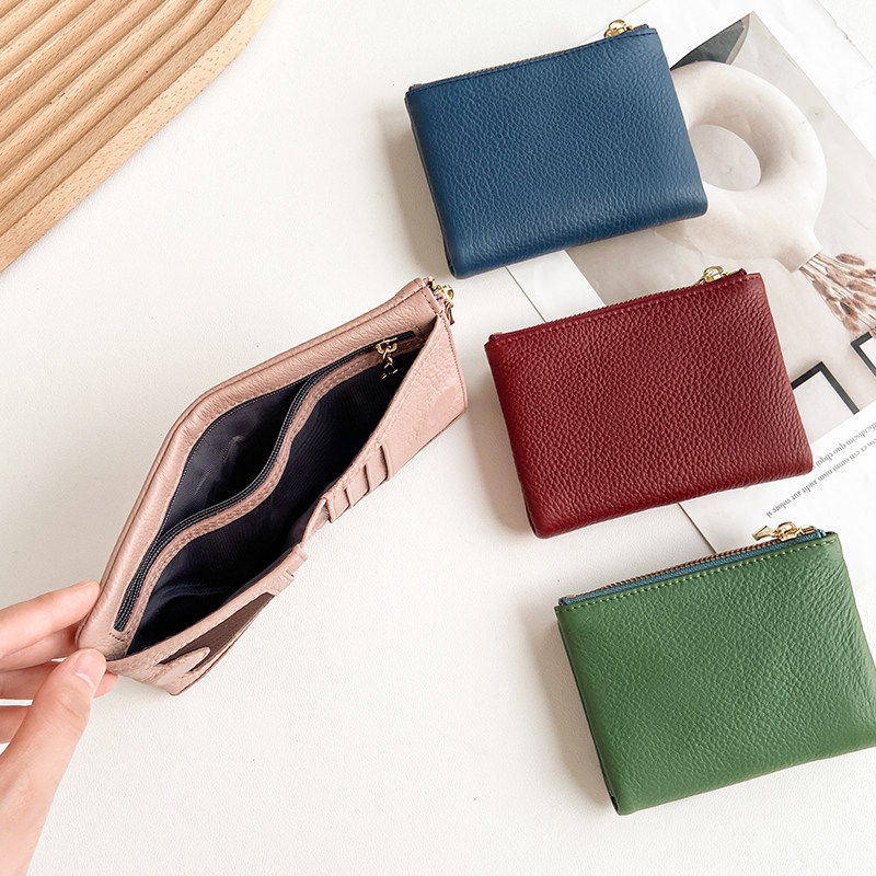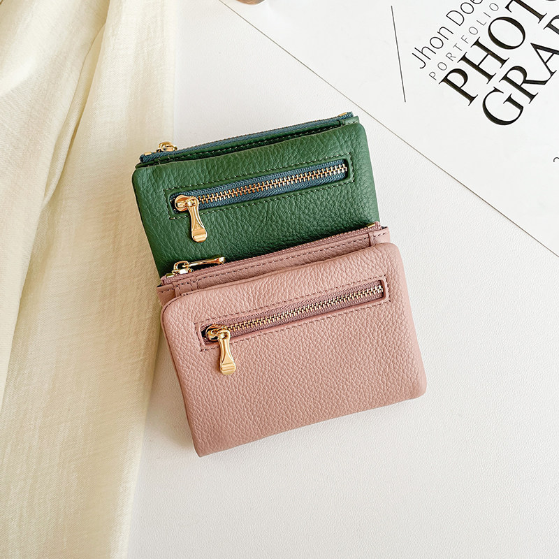 真皮高级感精致女士小钱包大容量头层牛皮磁扣钱夹三拉链袋零钱包