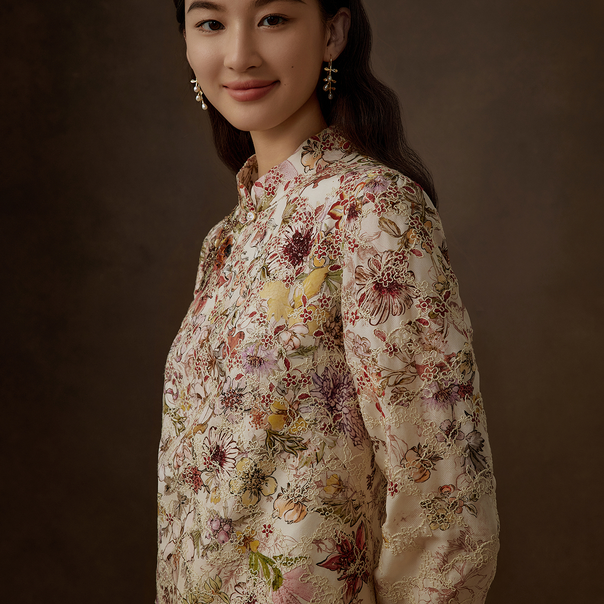 VGRASS优雅重工刺绣八宝纹连衣裙