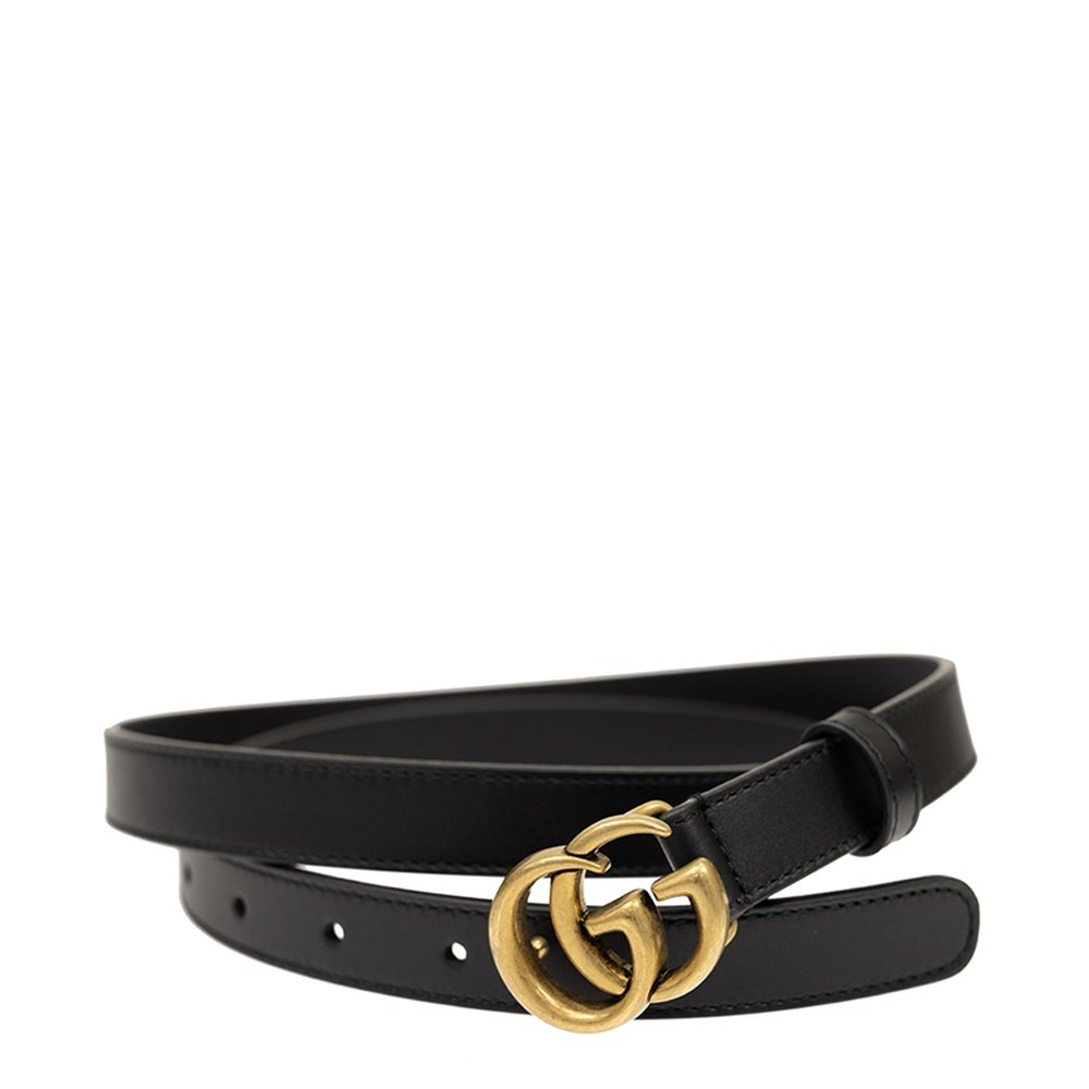 香港直邮GUCCI古驰 互扣式双G针扣皮革皮带女款 2cm宽黑色腰带