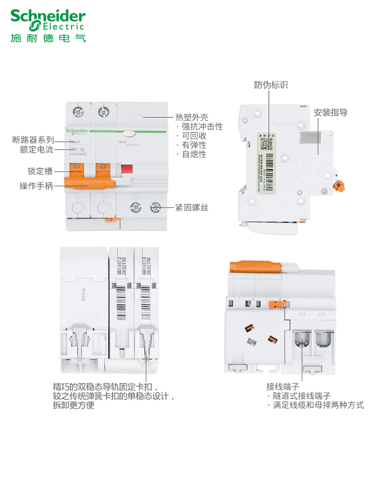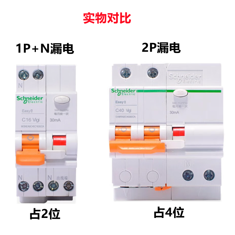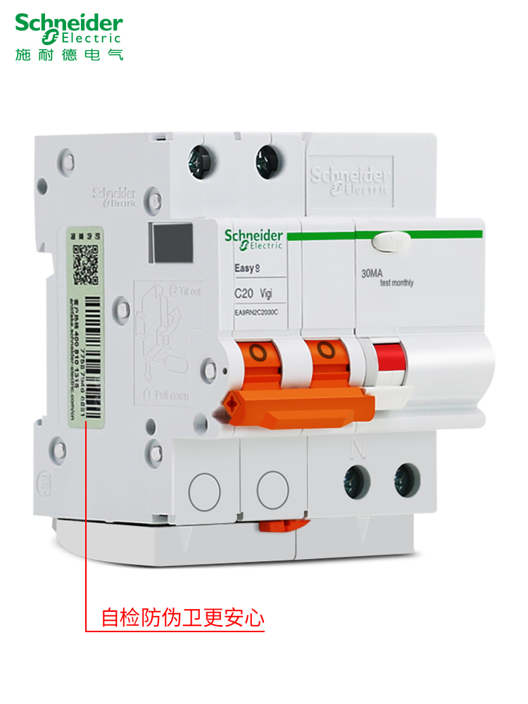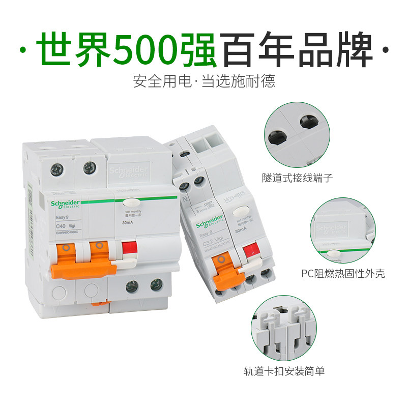 施耐德断路器家用EA9漏电保护器1P+N,2p,3,6A~63a空气开关带漏保