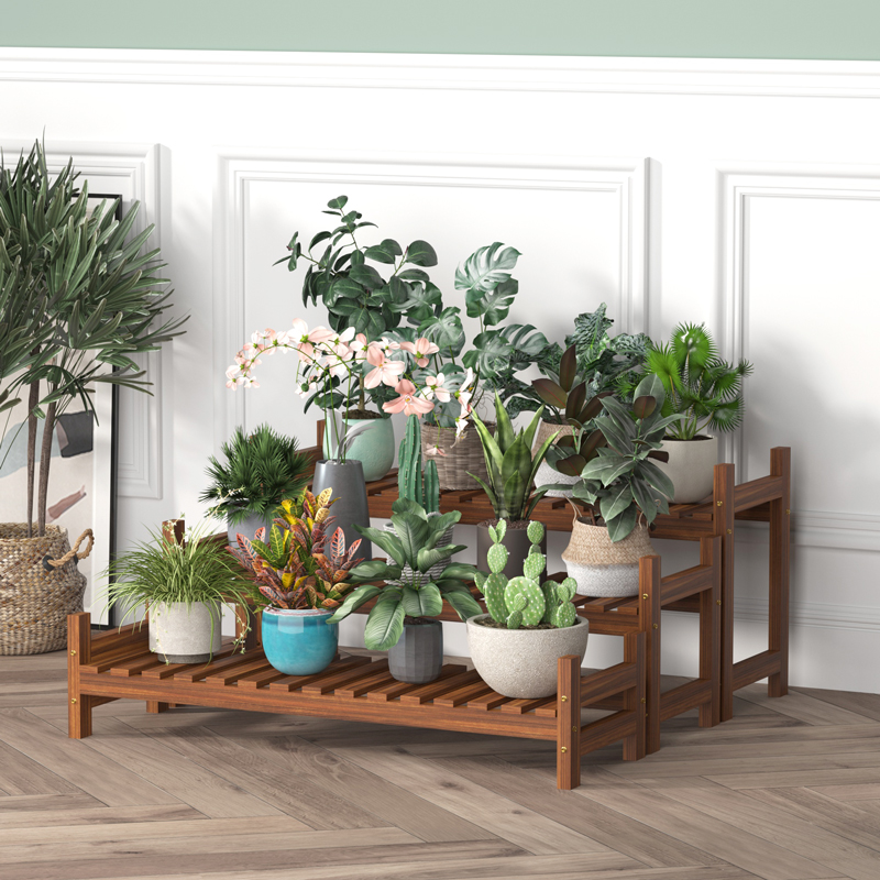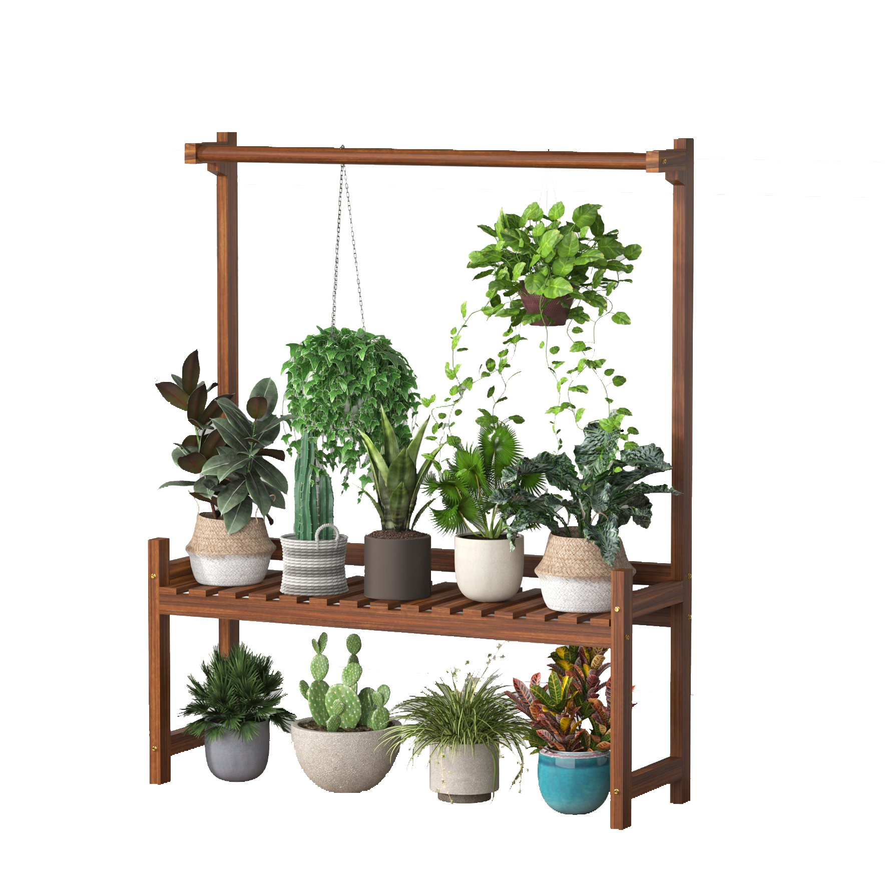 防腐实木花架子阳台单个吊兰绿萝植物花盆架落地式多层简约置物架