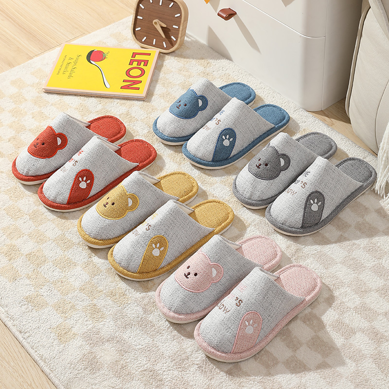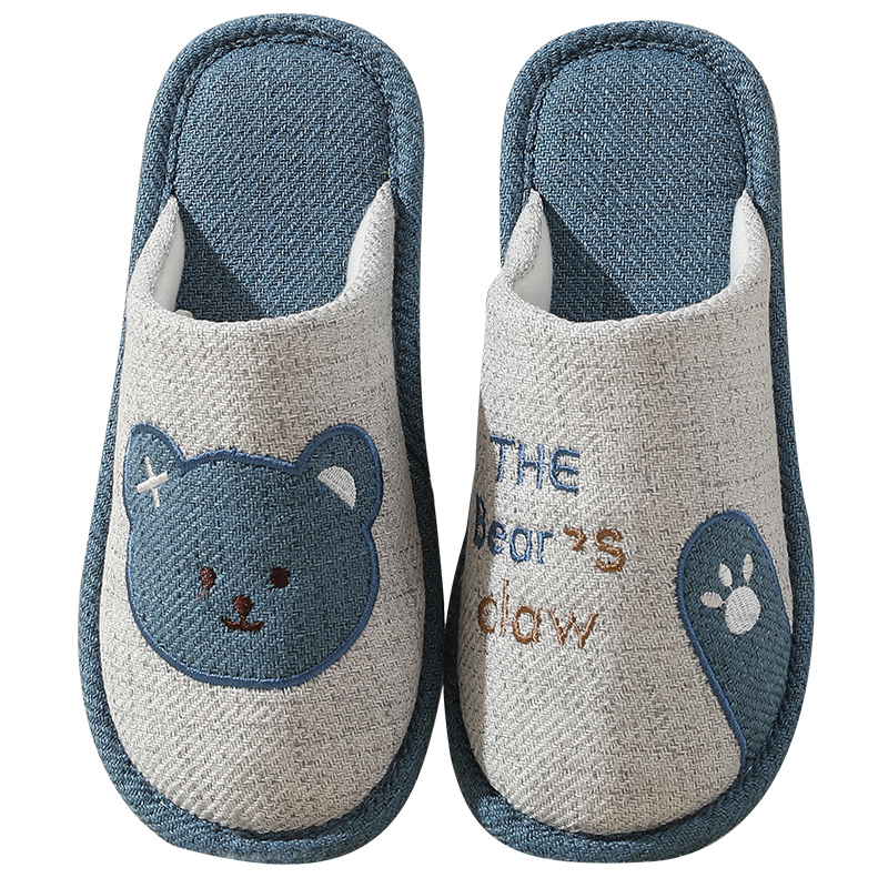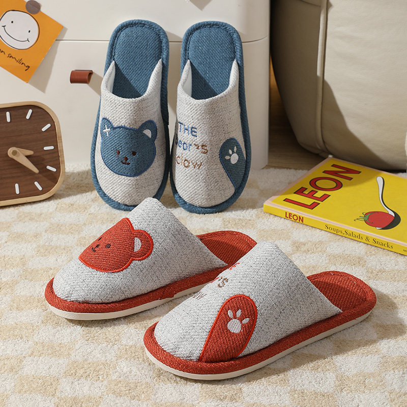 卡通棉麻布底拖鞋男春夏秋冬四季防滑室内地板静音吸汗透气无异味