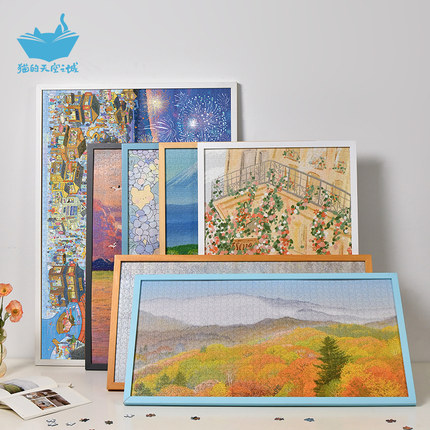 猫的天空之城拼图框1000片画框拼图裱框木质实木挂墙相框简约装饰