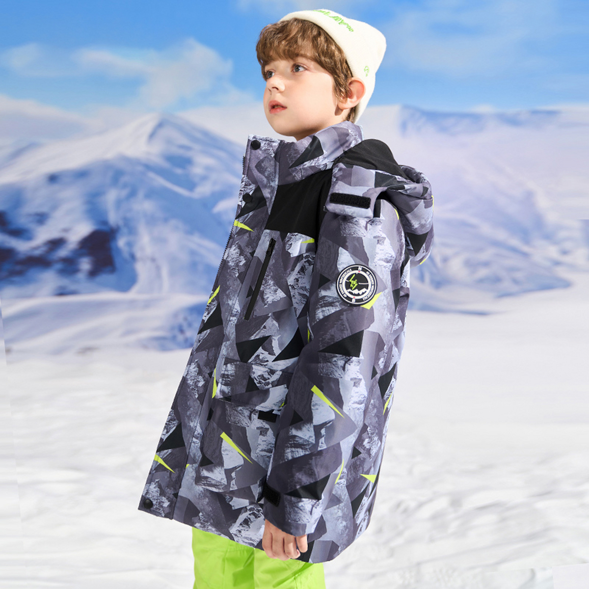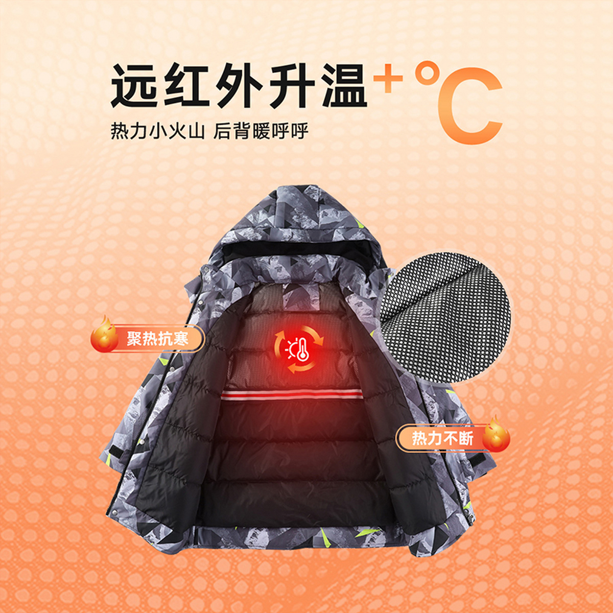 雪中飞2025冬新款男女童装短款印花运动连帽羽绒服加厚保暖户外
