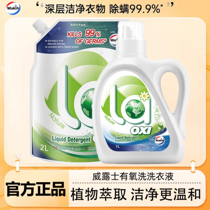 威露士洗衣液有氧洗手洗机洗1L家用装去污抑菌除螨洁净持久留香