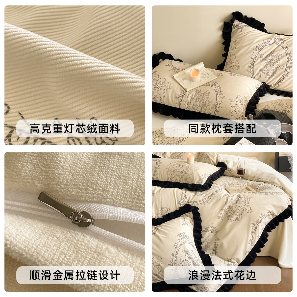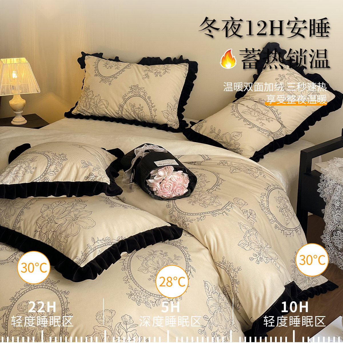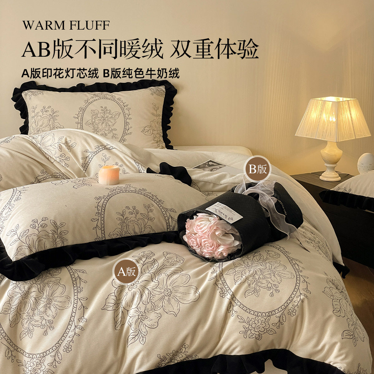 法式赫本风牛奶绒四件套2024新款冬季双面加绒加厚被套珊瑚绒床单