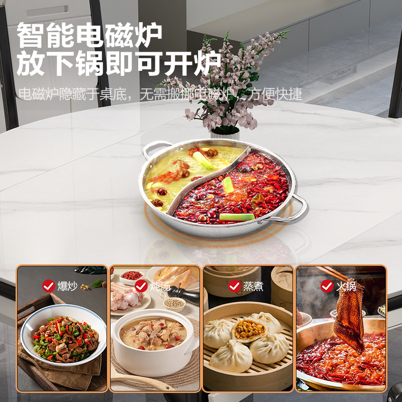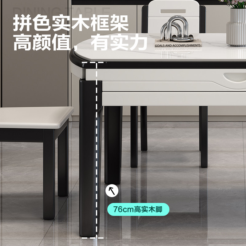实木岩板餐桌轻奢2025新款家用小户型饭桌椅组合可变圆桌现代简约