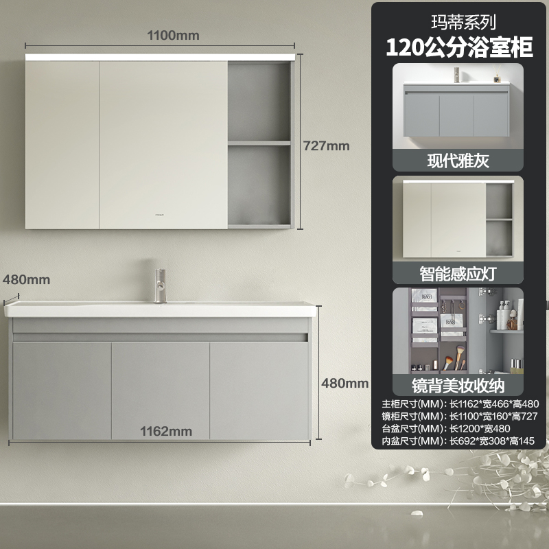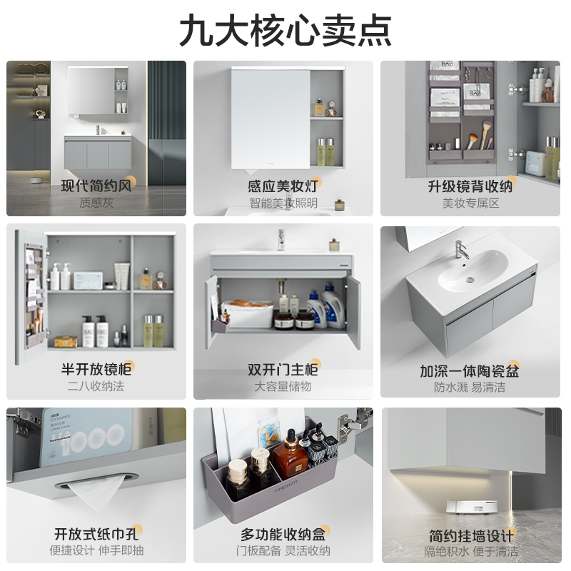 法恩莎智能美妆镜柜一体陶瓷盆浴室柜现代洗漱盆玛蒂