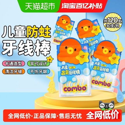 COMBO儿童牙线120支宝宝儿童专用 超细牙线棒便携