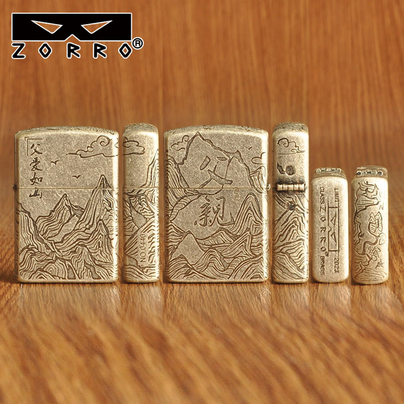 ZORRO佐罗正品纯铜砂轮防风煤油打火机定制二父爱如山原铜父亲节
