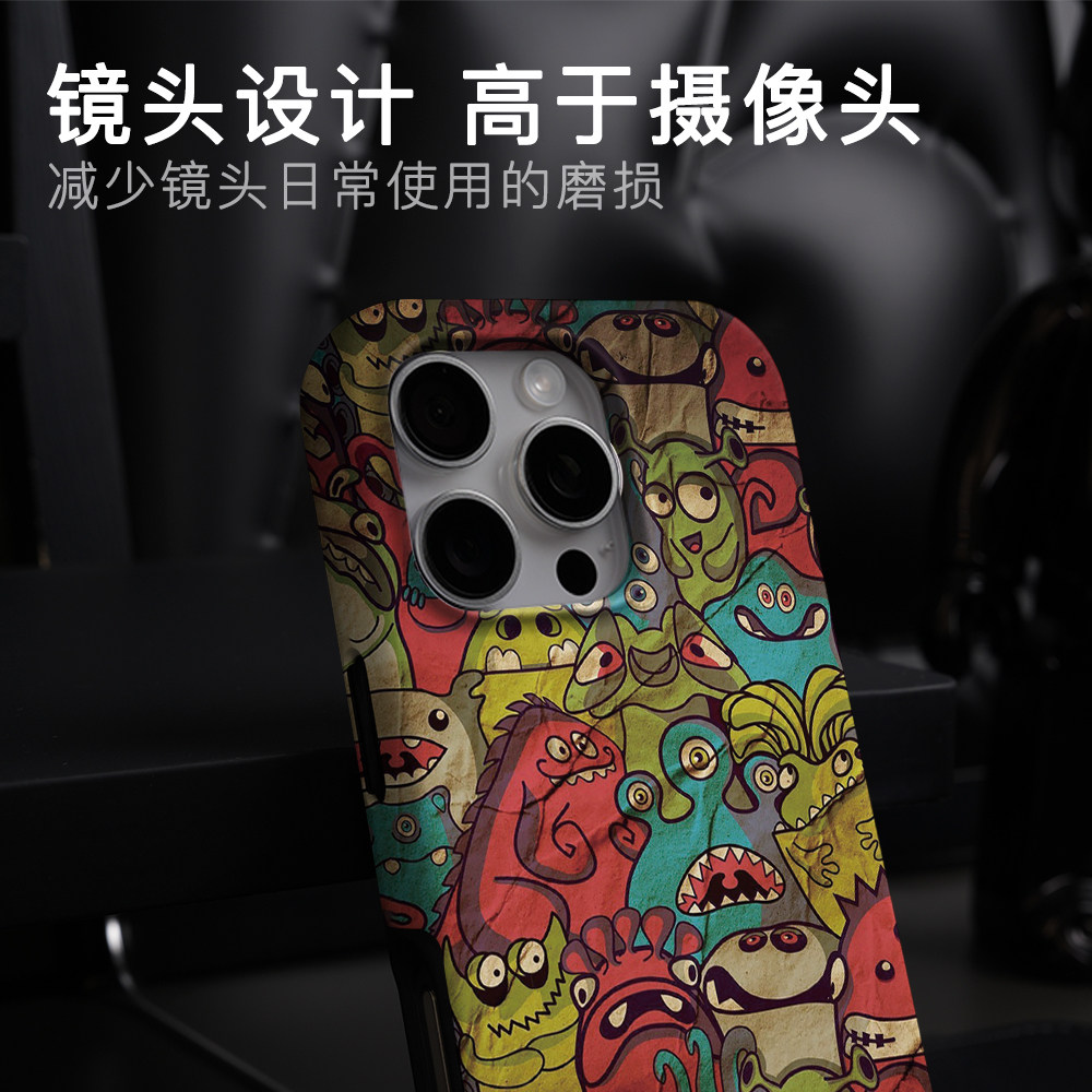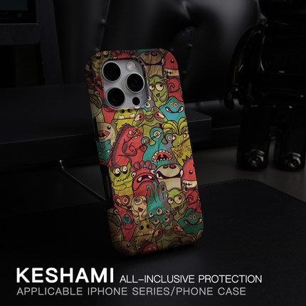 keshami适用苹果17promax/16pro手机壳带磁吸高端全包防摔新款磨砂硬壳个性潮男女15pro/14pro怪兽家族