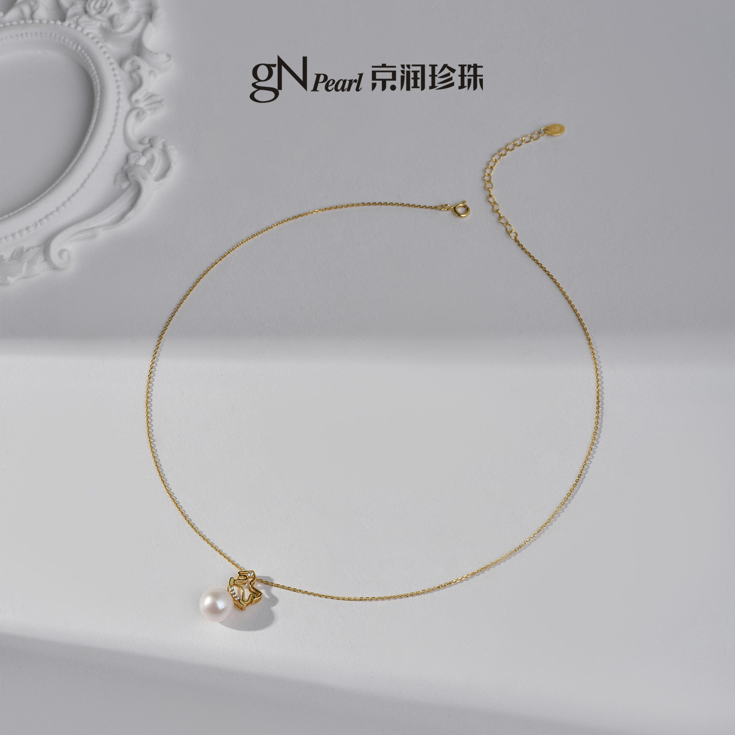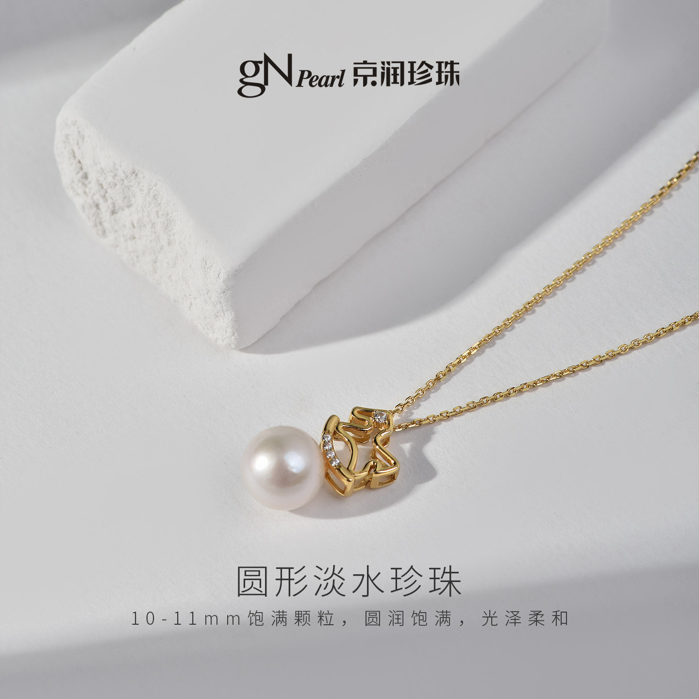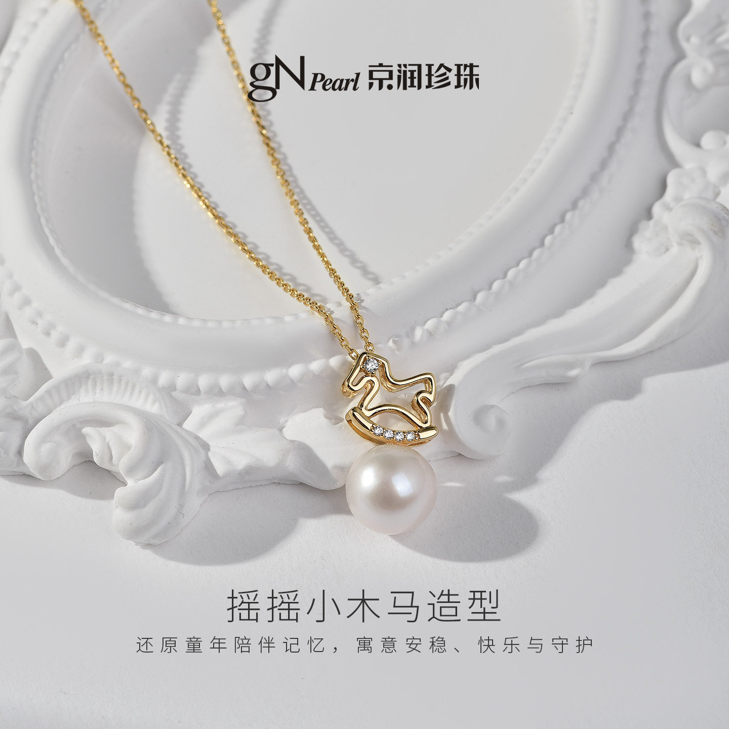 京润珍珠小木马925银淡水珍珠吊链10-11mm白色圆形本命年礼物女L