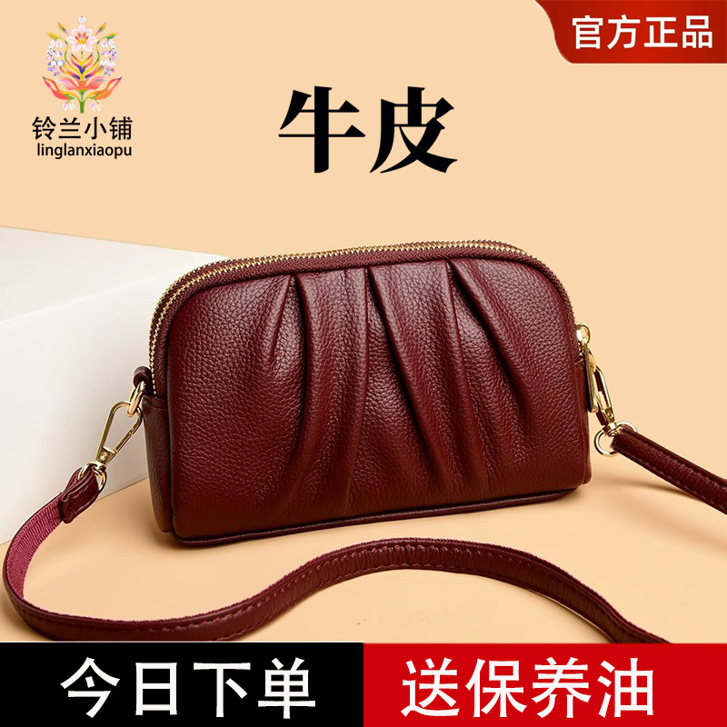 真皮手拿包女2025新款牛皮单肩包双层休闲妈妈包斜挎零钱包手机包