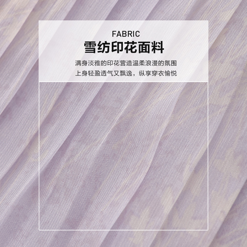 未风紫色雪纺荷叶边连衣裙女秋2025秋季新款女装法式高腰显瘦裙子