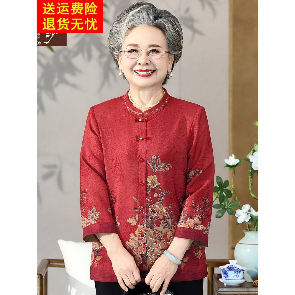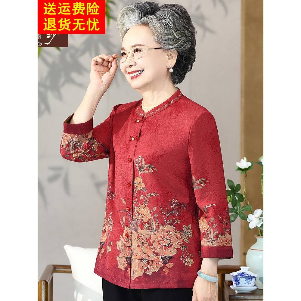 奶奶夏装衬衫女中老年人衬衣60岁70老人太太上衣服妈妈装夏季套装