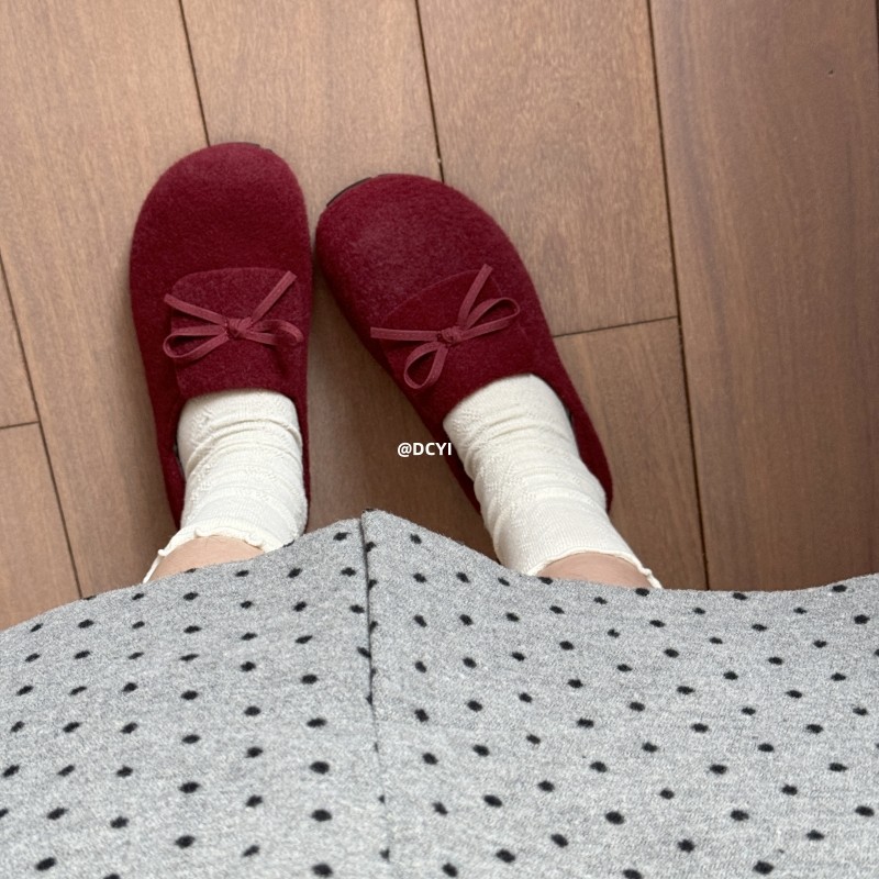 勃肯鞋安可拉红蝴蝶结豆豆鞋棉鞋