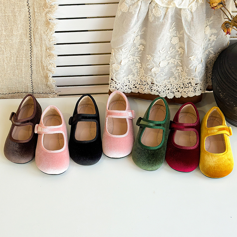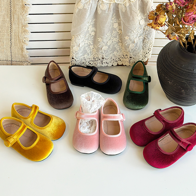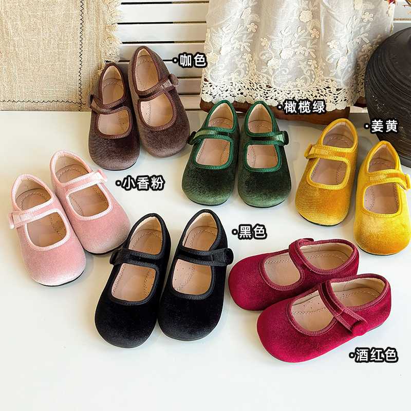 韩版儿童丝绒小皮鞋春秋女童红色公主鞋浅口单鞋宝宝豆豆鞋奶奶鞋