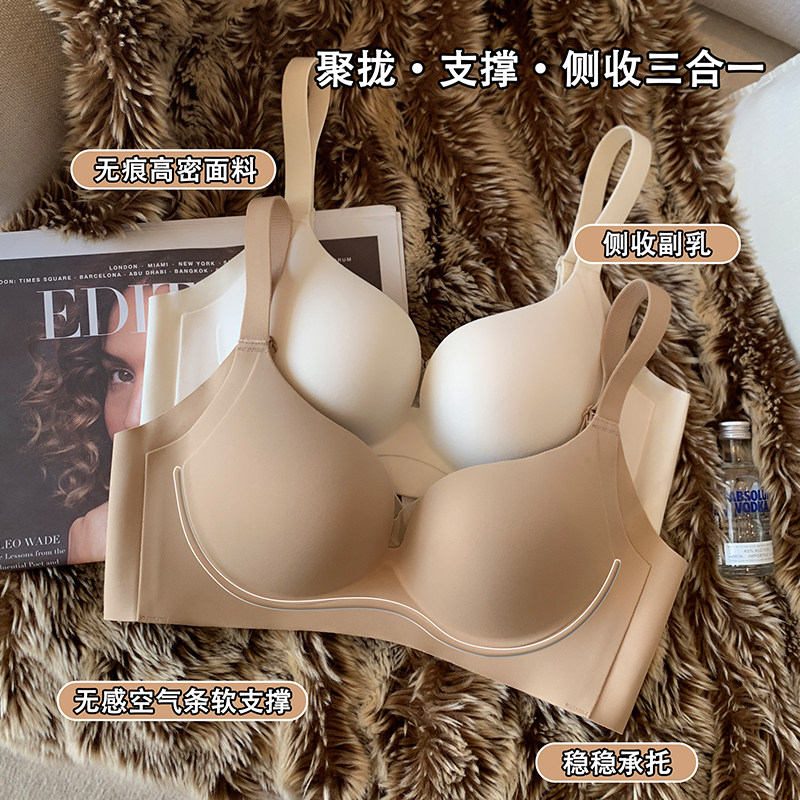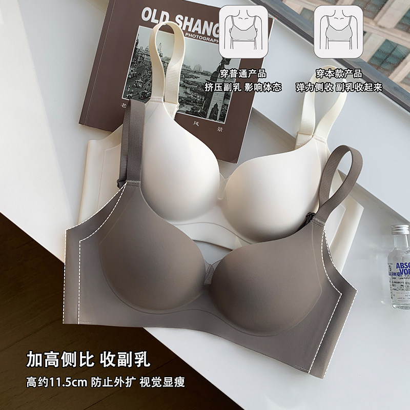 日本光面薄款无痕内衣女大胸显小显瘦收副乳防下垂大码调整型文胸