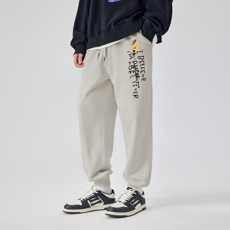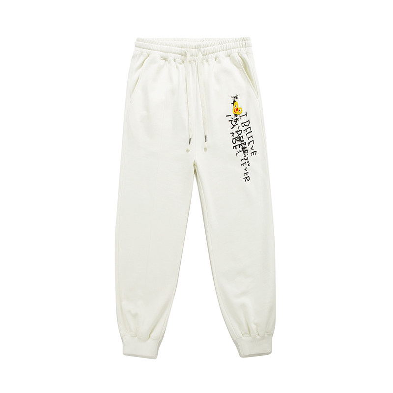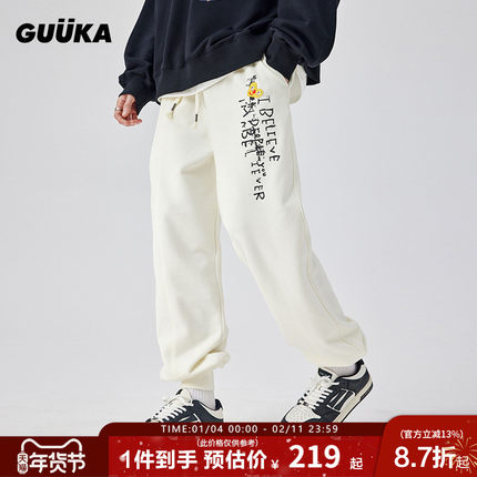 GUUKA&杨悉圣儿联名奶白色束脚卫裤男冬情侣加绒加厚裤子运动宽松