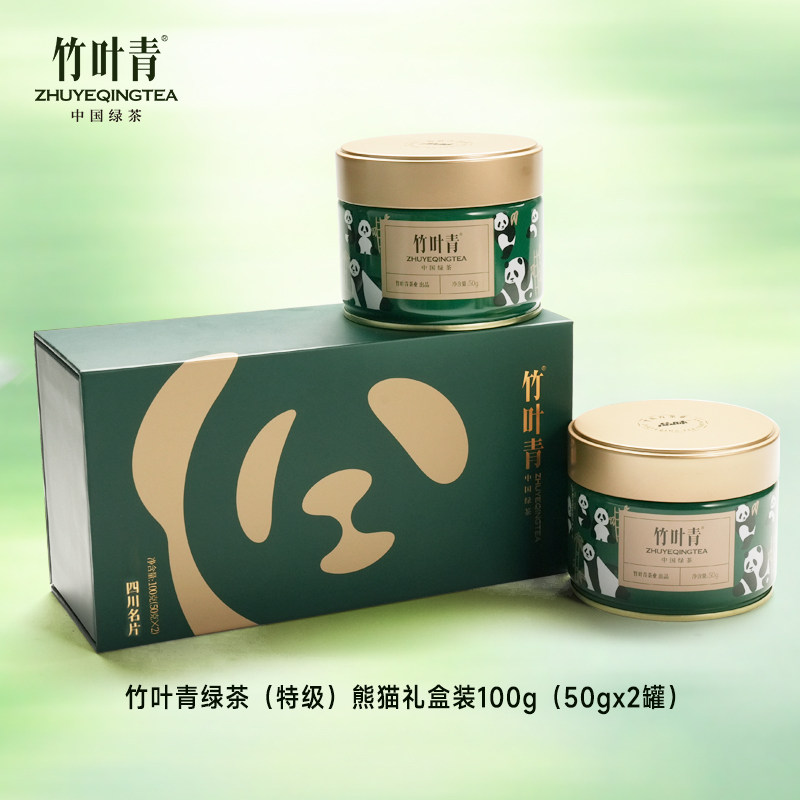 年货礼盒】竹叶青茶叶特级绿茶峨眉高山熊猫双罐礼盒100g四川送礼