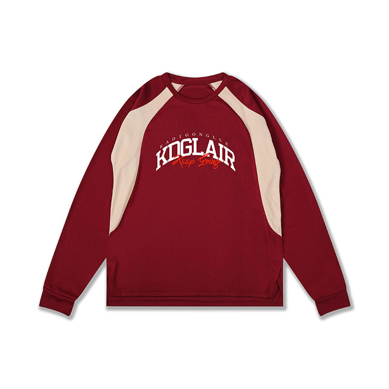 2025年运动拼色美式长袖t恤男女投篮服速干透气跑步健身衣排汗