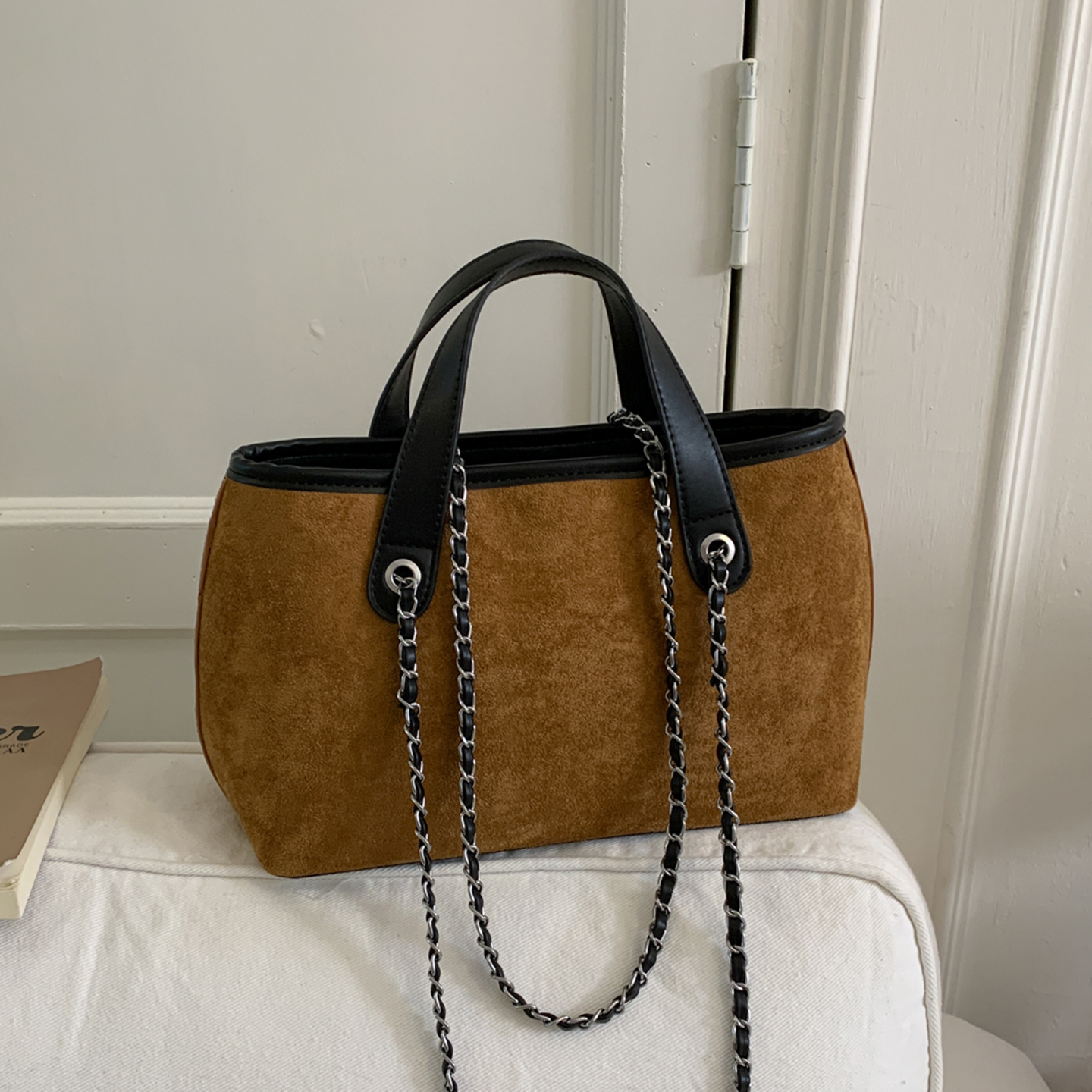 大容量包包女式2025新款潮手拎包复古麂皮绒链条单肩包通勤托特包