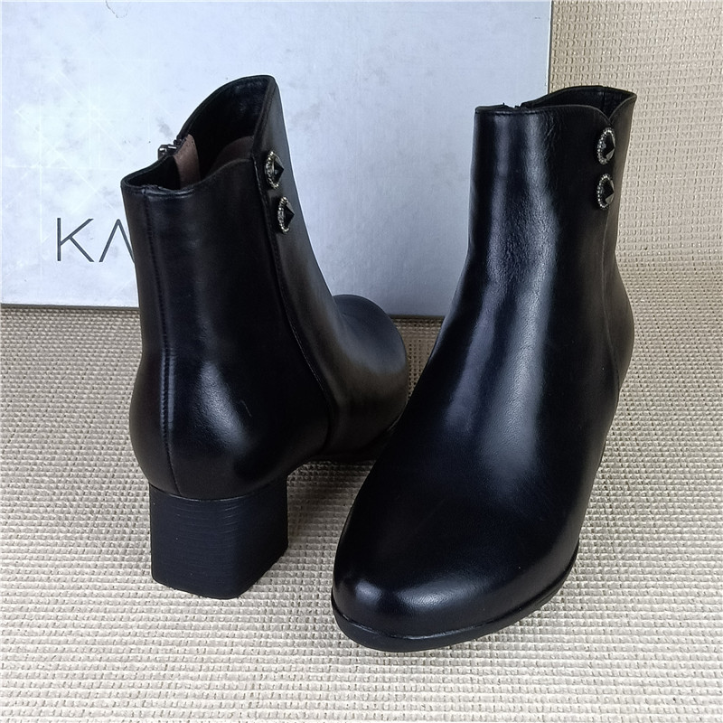 卡迪娜专柜正品撤柜断码处理真皮马丁靴粗跟通勤圆头加绒羊皮短靴
