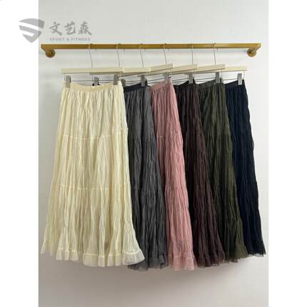 秋冬季飘逸浪漫乱褶梦幻网纱半身裙经典百搭通勤A字显瘦长款裙子