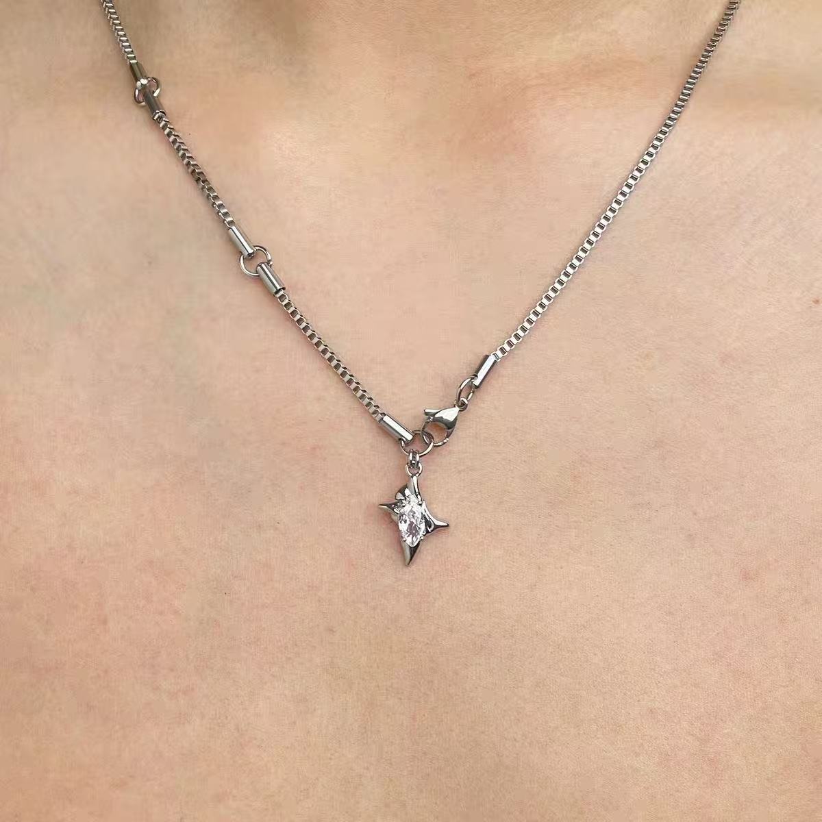 双子星钛钢项链男女嘻哈ins小众设计轻奢高级感简约毛衣链配饰品
