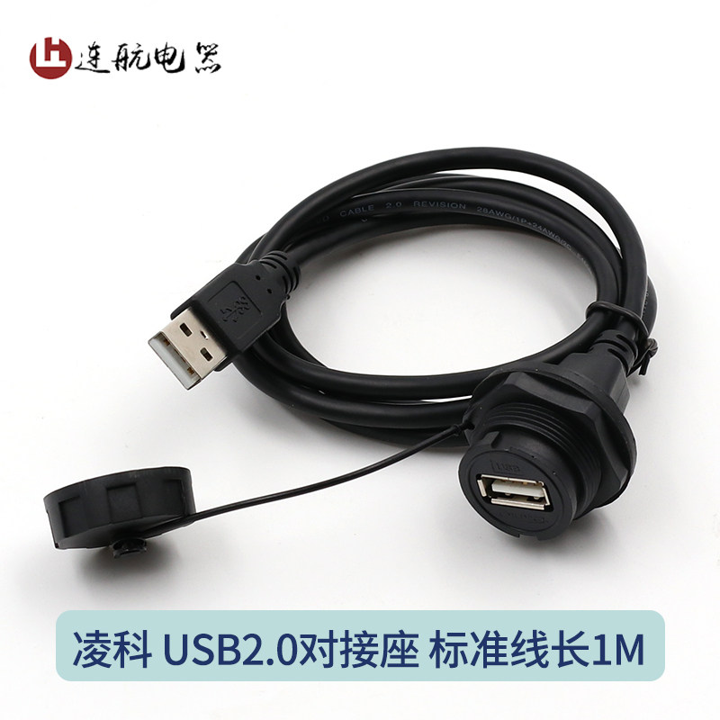 凌科YU-USB2.0数据连接器 防水航空插头插座1M线 USB2插头USB插座
