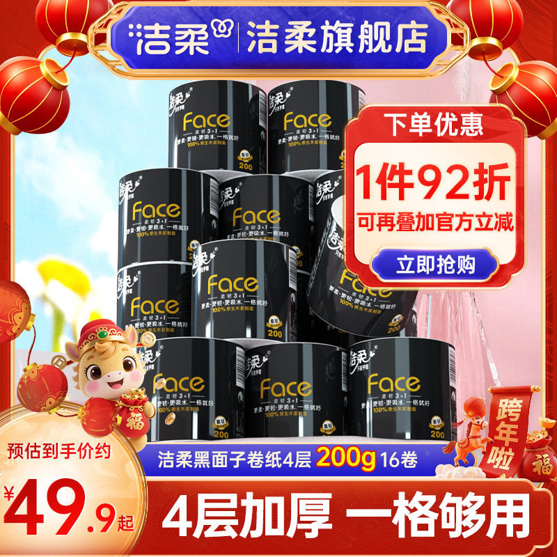 洁柔卷纸卫生纸纸巾face黑面子200g卷筒纸厕所纸16卷厕纸家用实惠