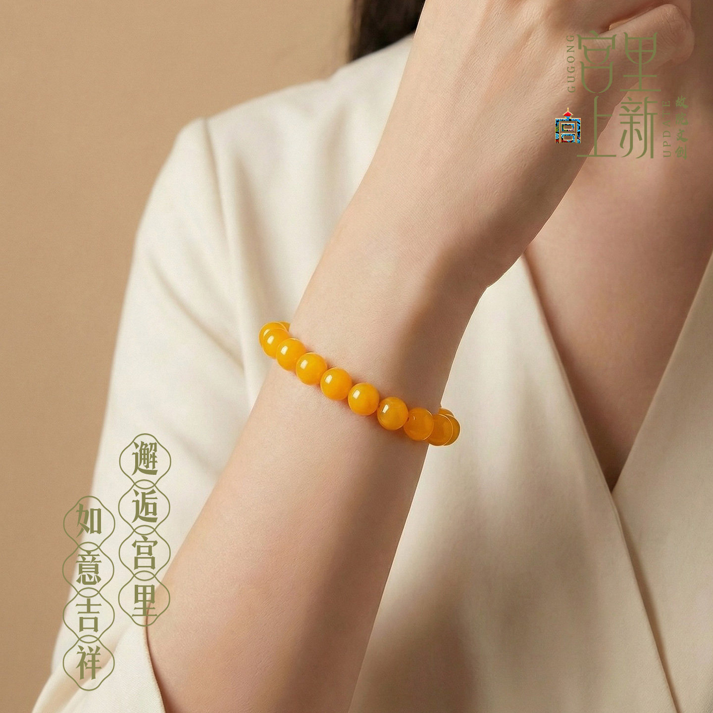 宫里上新蜜蜡手链串珠女款正品天然鸡油黄琥珀手串生日本命年礼物