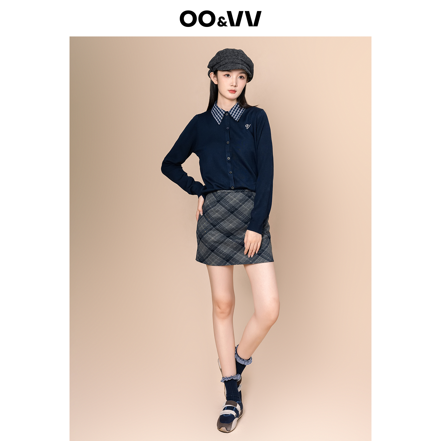 oo&vv设计感假两件拼接针织衫女25秋冬新款时尚简约通勤毛衣打底