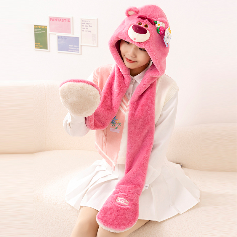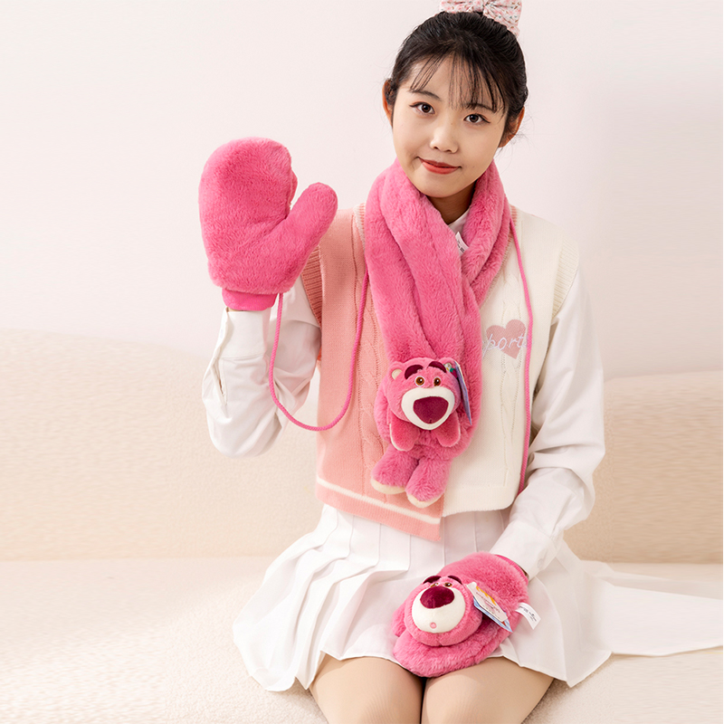 【自营】迪士尼草莓熊冬季可爱毛绒帽子围巾手套 女生新年礼物