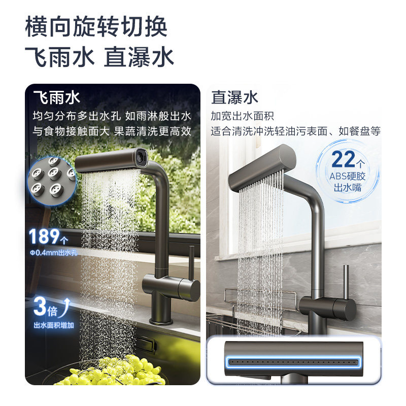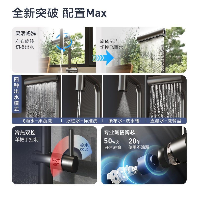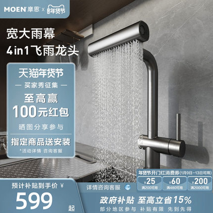 【下拉详情领券】摩恩厨房龙头抽拉飞雨水瀑布水槽龙头冷热16350