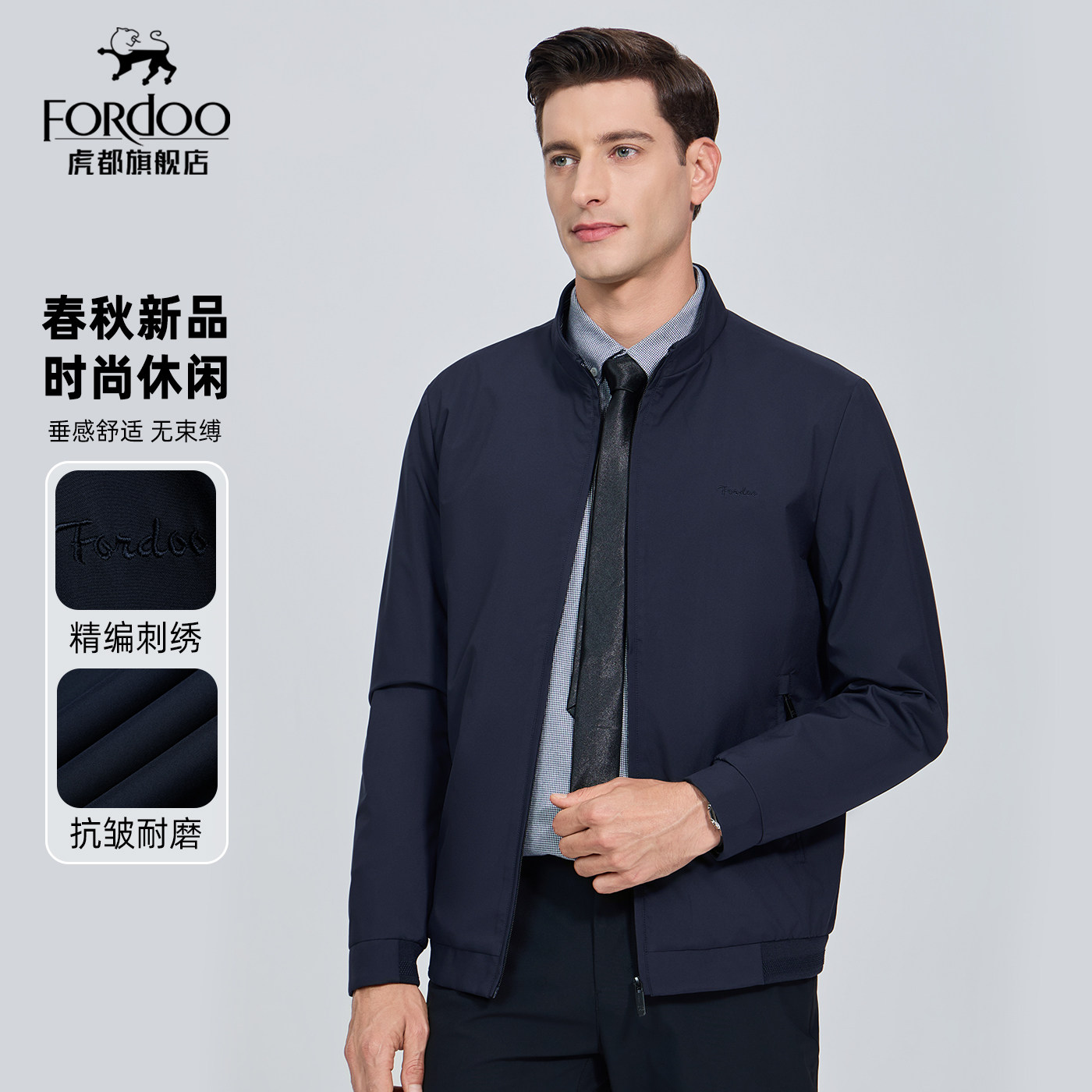 虎都冬季立领加棉行政夹克外套男