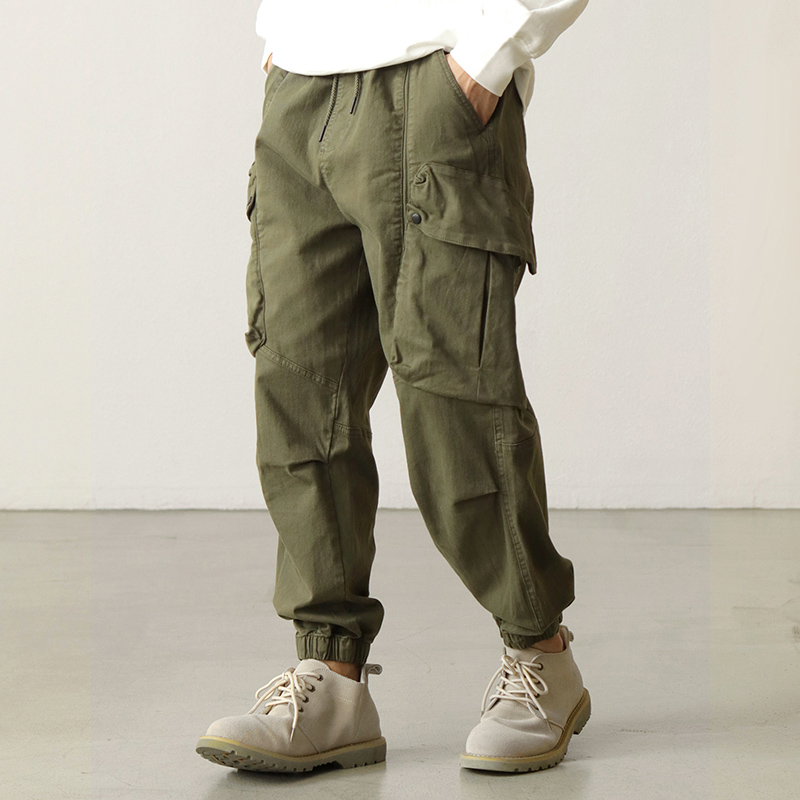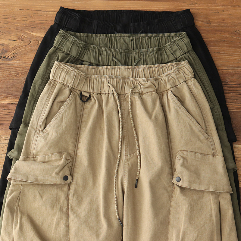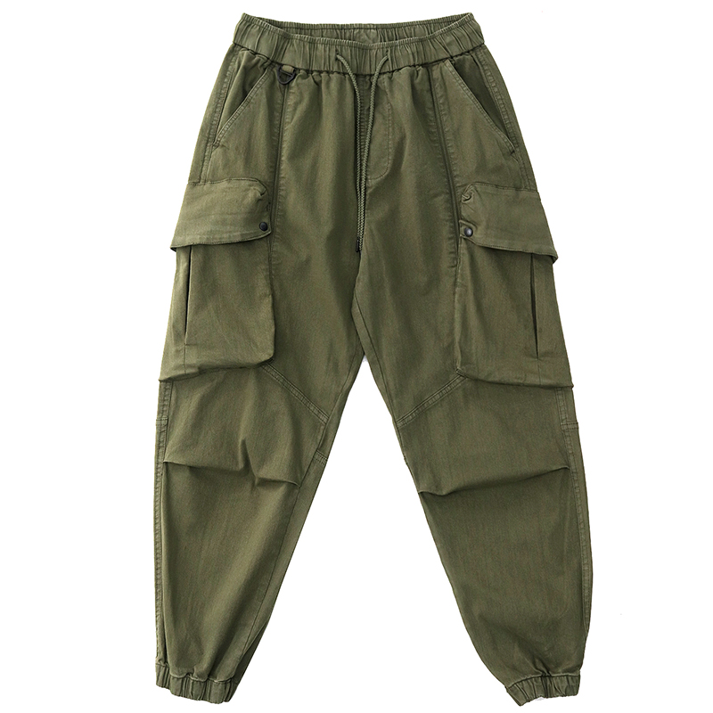 美式复古伞兵裤春秋水洗做旧哈伦宽松休闲锥形松紧腰束脚工装裤男