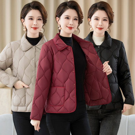 中老年人女装妈妈装时尚百搭棉服翻领休闲秋冬装棉袄大码棉衣外套