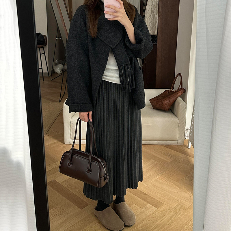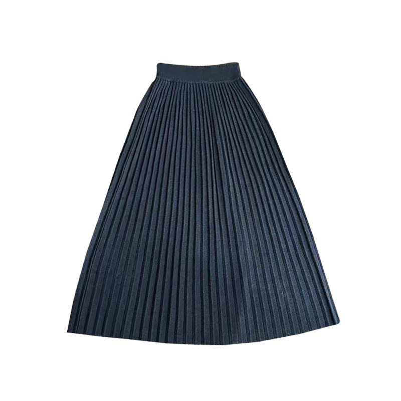 灰色针织百褶半身裙女秋冬季大码胖mm显瘦伯克利a字长款羊毛半裙