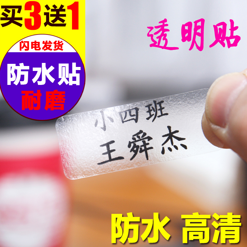 姓名贴幼儿园入园名字贴透明防水贴纸小学生儿童宝宝布贴标签定制