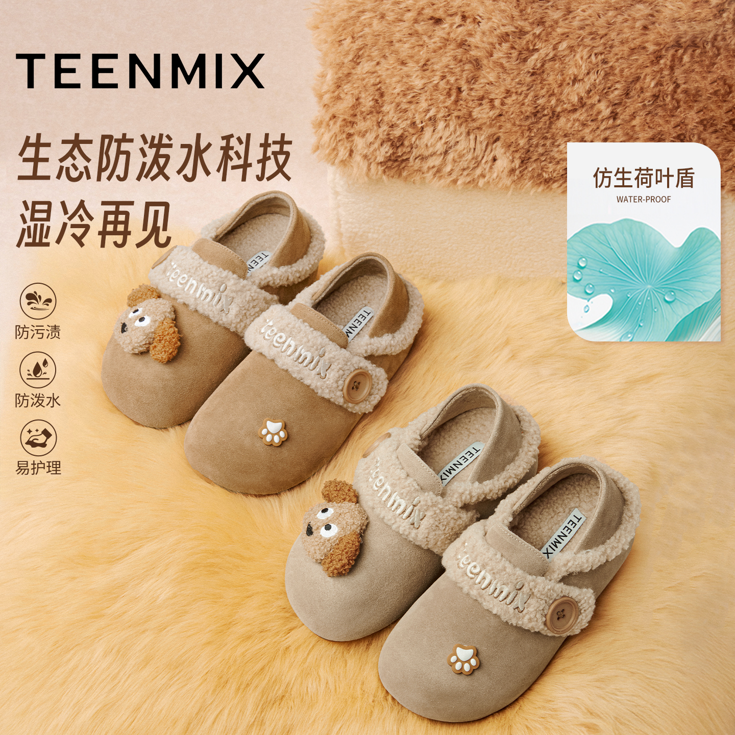 天美意绒绒拿铁厚底加绒保暖勃肯毛毛鞋棉鞋女雪地靴短靴子冬新款